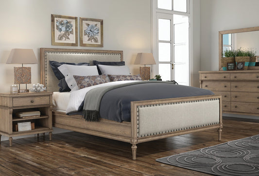 Cassandra European Oak & Upholstered Bed