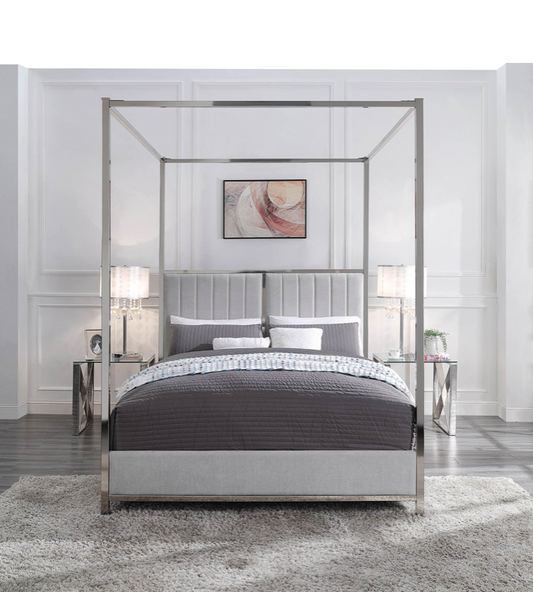 KINGSTON 4 Poster Bed Chrome plated Metal Frame upholstered headboard