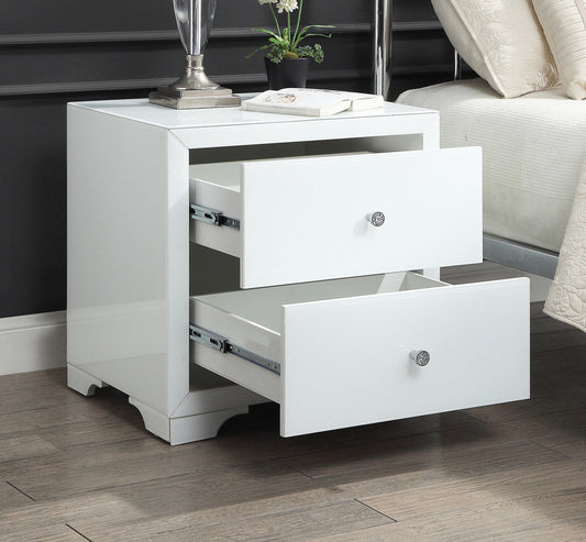 VEGAS White Glass Bedside Table 3 Drawer with Crystal Effect Handle