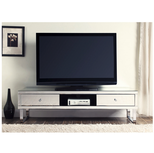 Mirrored Media TV Stand Cabinet 2 Drawers Chrome Plated Legs