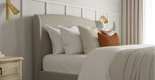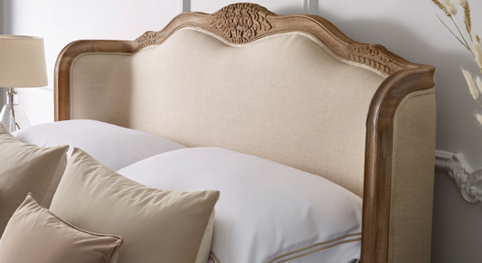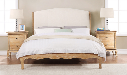 Versailles Linen and Weathered Oak Wing Headboard Bed