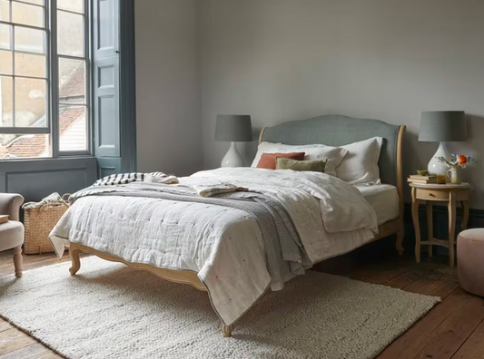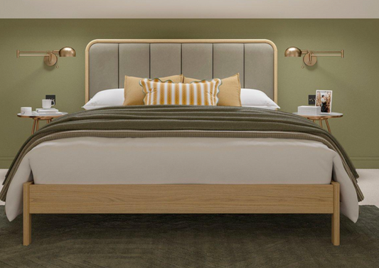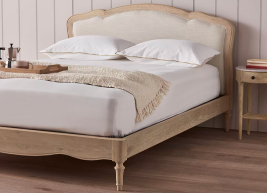 MILLES Bed Oak & Upholstered Weathered Provincial Finish