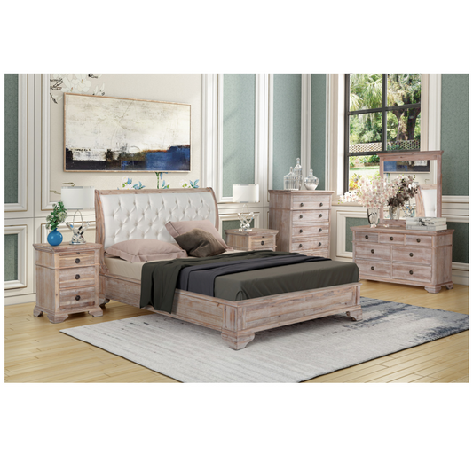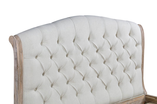 IBIZA Sleigh Bed Tufted Upholstered Headboard Footboard Acacia Wood - A