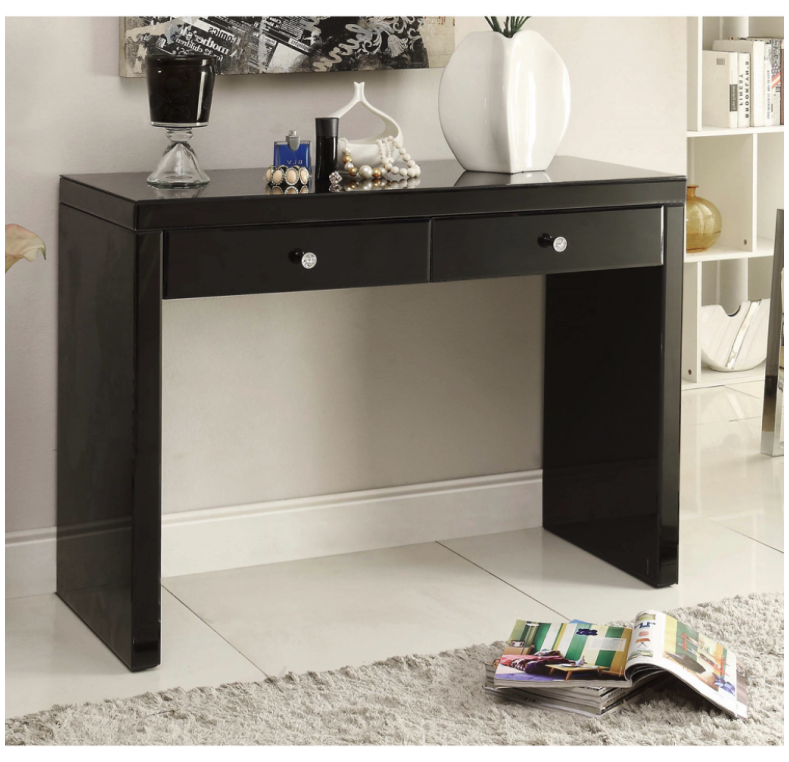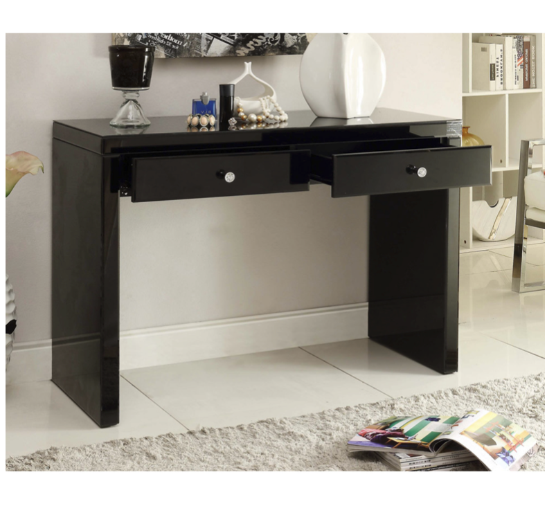 Rio Black Glass Dressing Table Console 2 Drawers Metal & Crystal Insert Handles