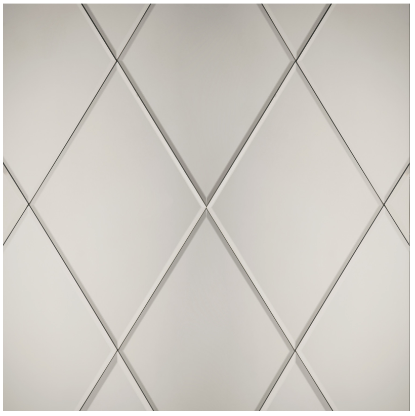 - A Diamond shaped silver mirrored tile with beveled edge.