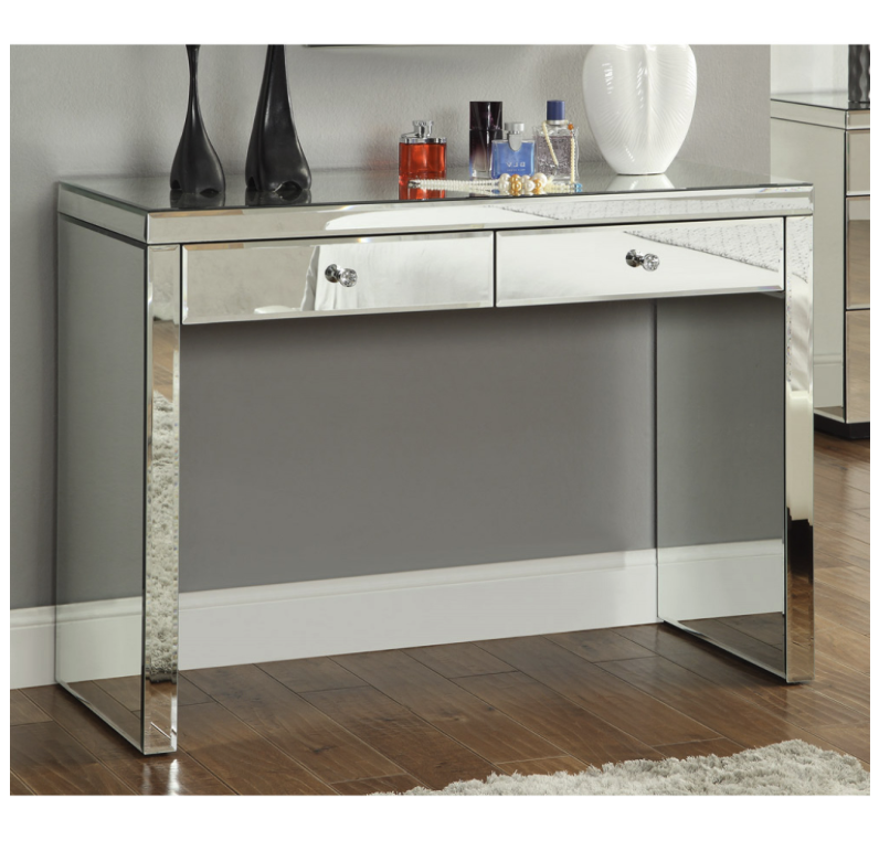 - This Venetian & Contemporary Inspired, RIO Crystal Mirrored 2 Drawer Dressing Table Console reflects light beautifully, making it an elegant, and practical dressing table console to suit any bedroom. This is a unique and exclusive range.