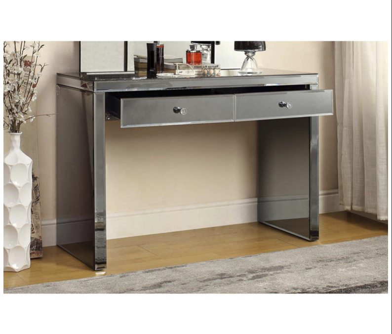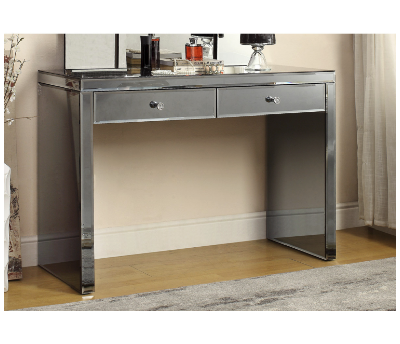 Rio Smoke Mirror Dressing Table Console 2 Drawers Metal & Crystal Insert Handles